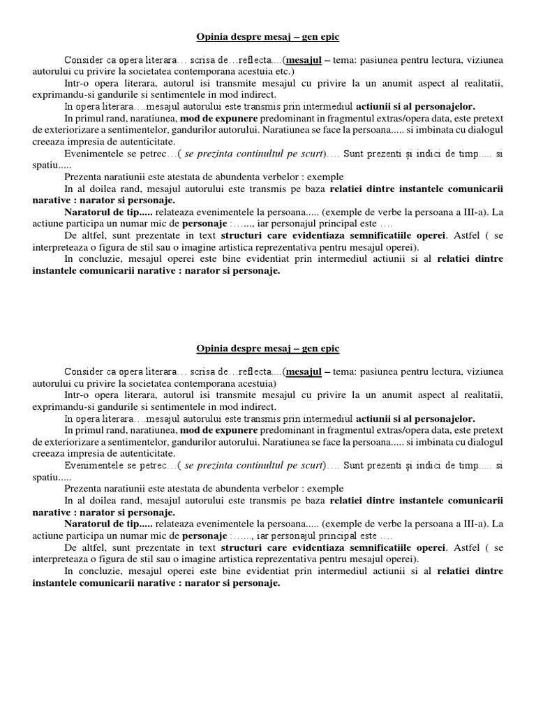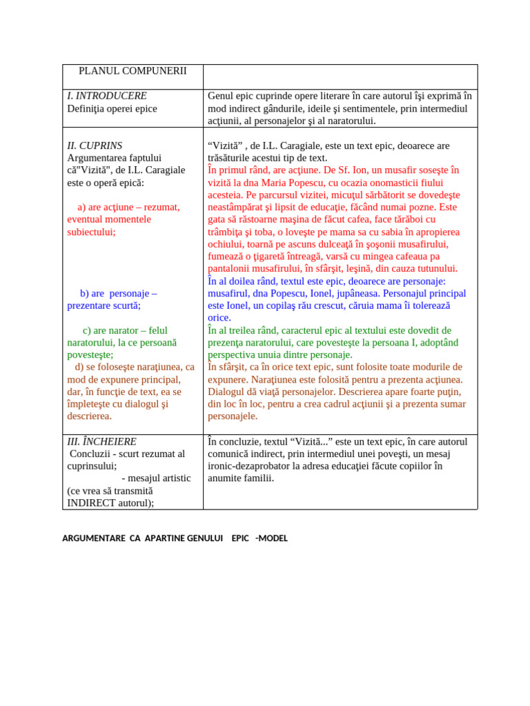 Model De Argumentare A Apartenenţei Unui Text La Genul Epic