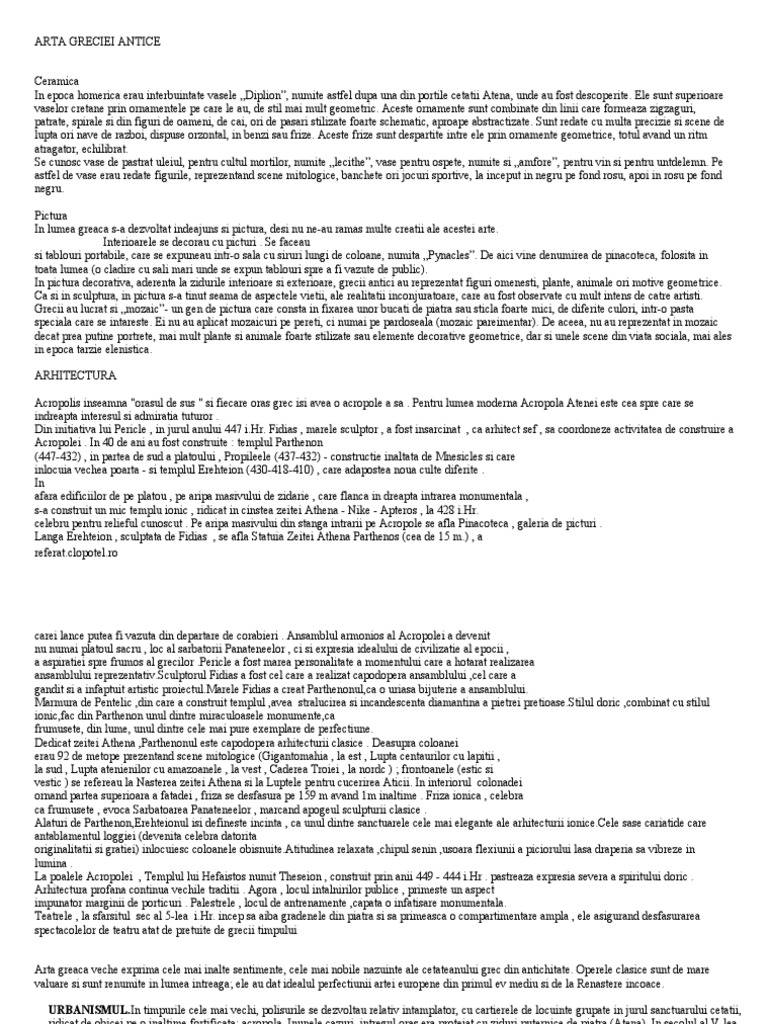Arta Greciei Antice Referat