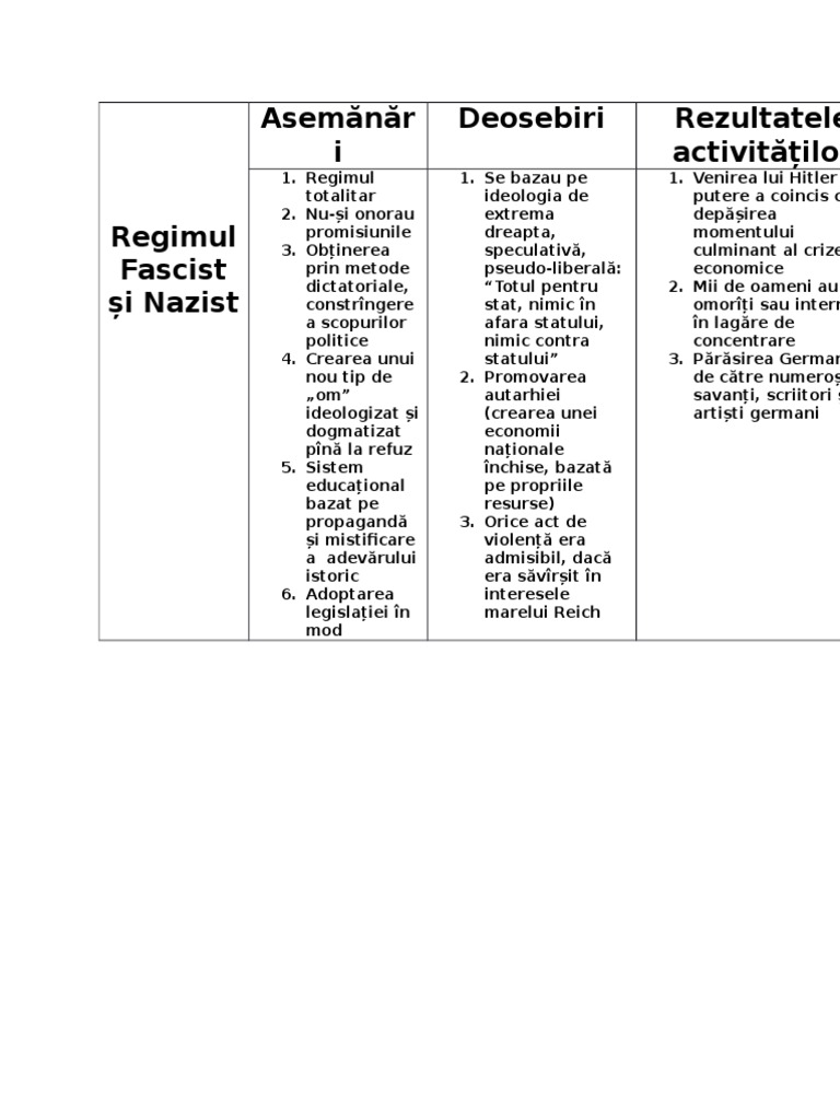 Asemanari Si Deosebiri Dintre Regimul Fascis Si Nazist Si Regimul
