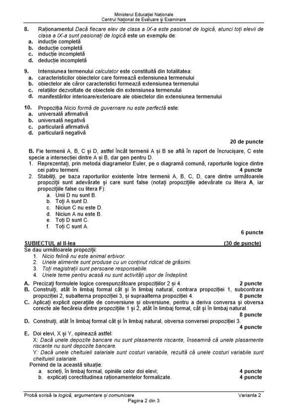 Barem Subiectele La Bacalaureat Proba De Logică Si Argumentare