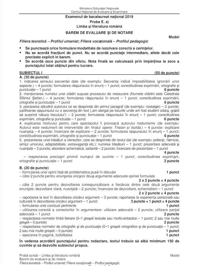 Bac 2019 Barem Edu Ro Cum Se Rezolvau Subiectele La Romană