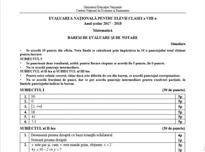 Bareme Matematică Simulare Evaluare Națională Viii A Subiecte