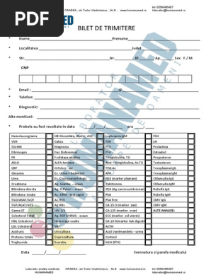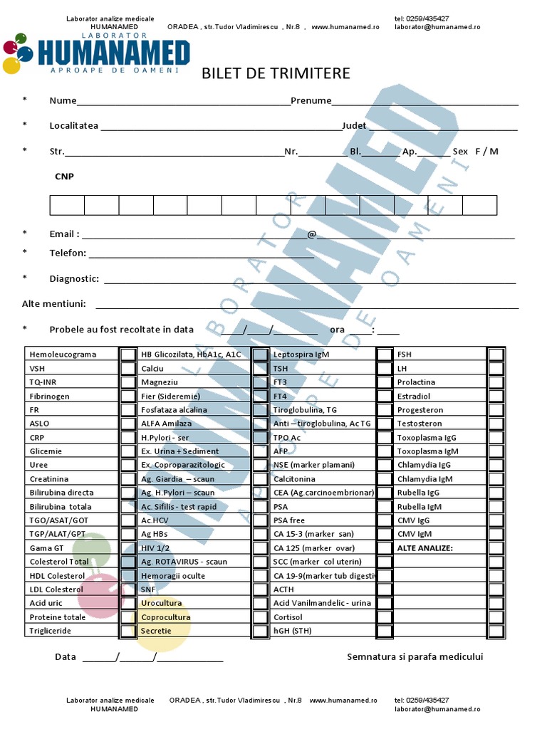 Bilet De Trimitere La Laborator Humanamed Cu Header Footer Si