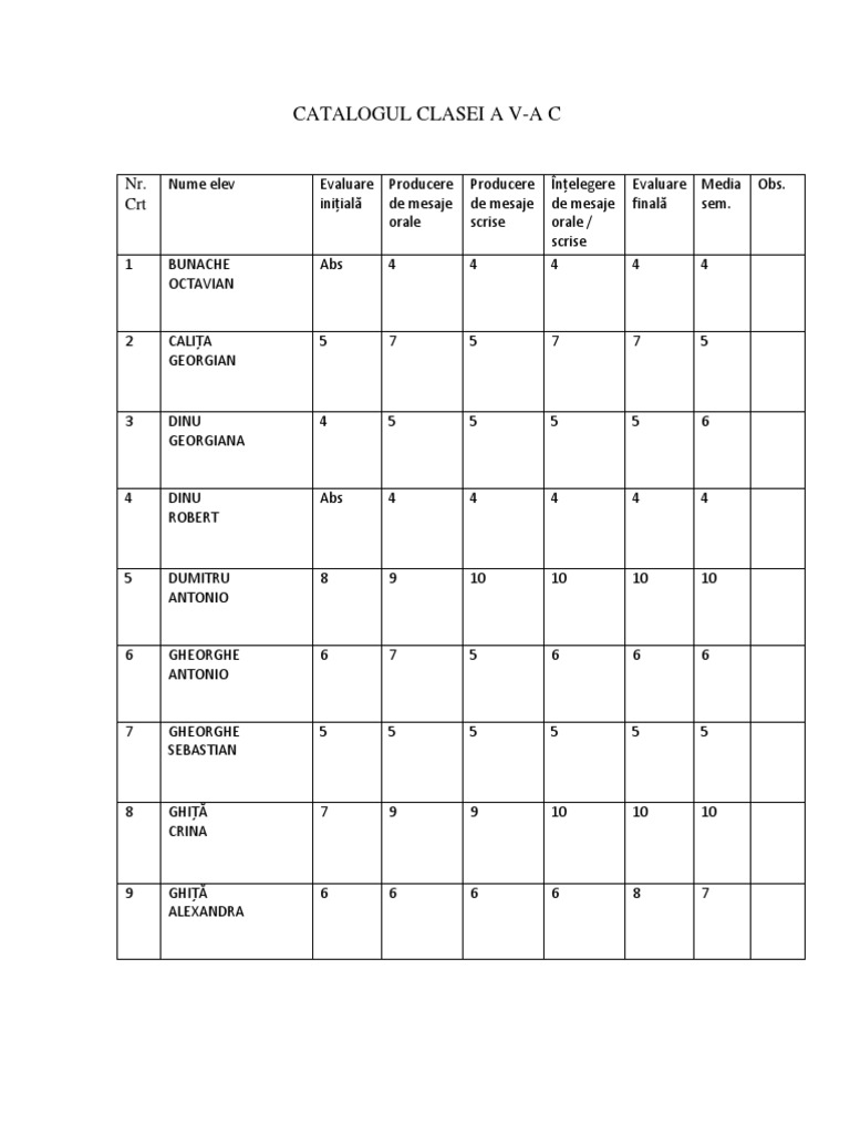 Catalogul Clasei Cl V Xii Rom Mold Didactica