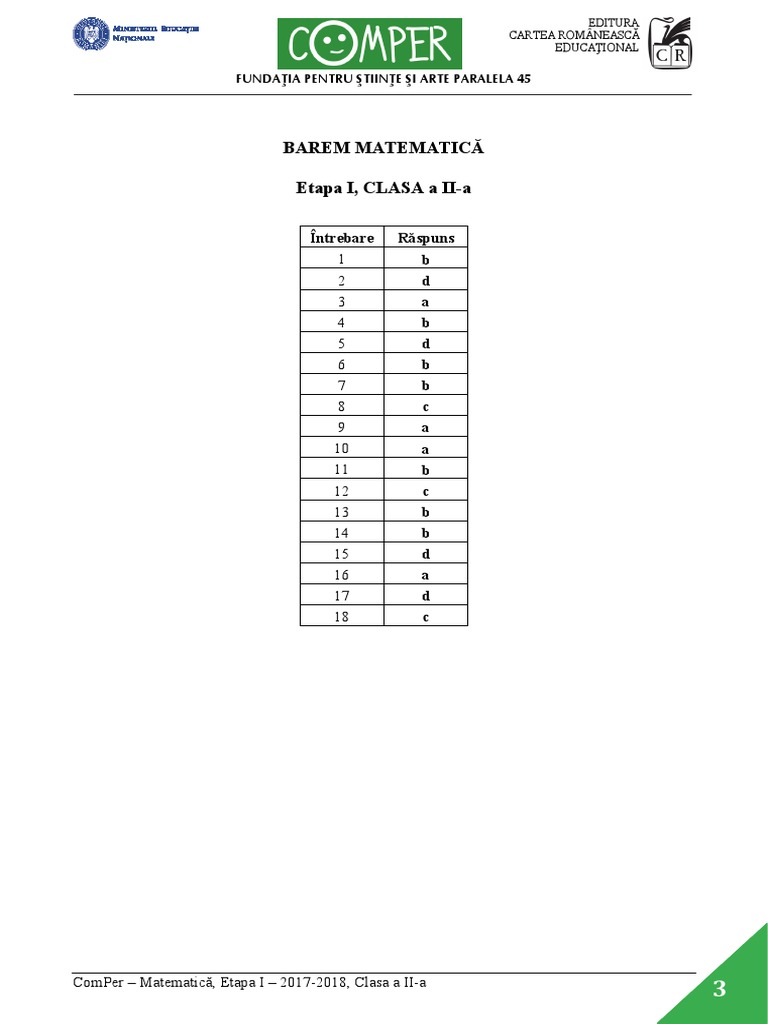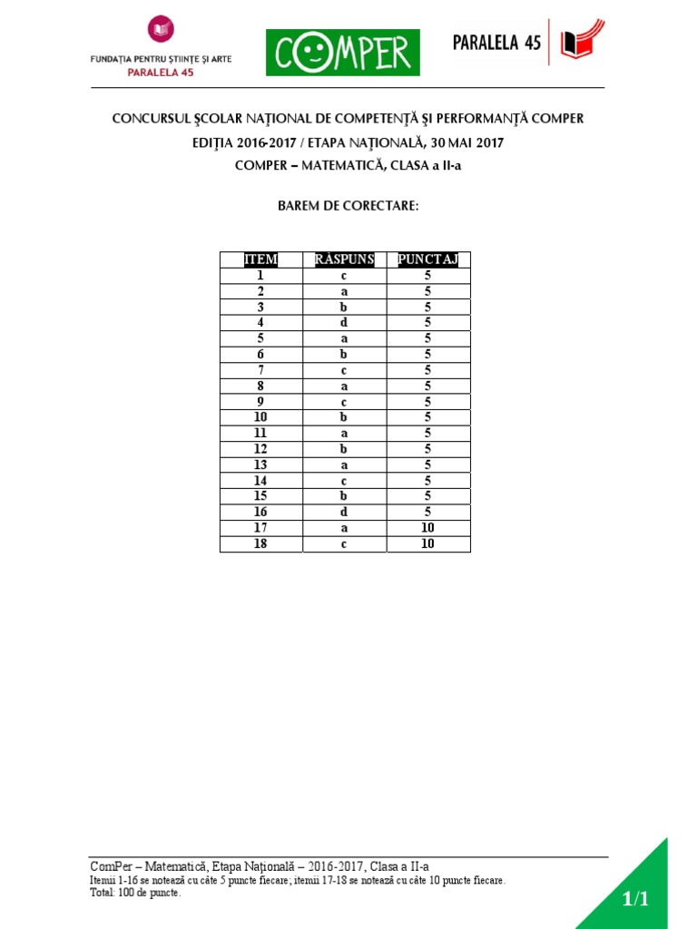 Comper etapa nationala 2017. 7 iunie 2017 va fi ziua de rezervă în care elevii claselor i viii calificaţi la etapa naţională comper matematică care nu au susţinut testul scris în ziua stabilită de concurs pentru clasa lor vor putea susţine testul. 29 mai 2 iunie 2017 diferențiat pe clase comper 2017. Comper 2017 matematica etapa nationala subiecte si bareme de profesor jitaru ionel pe 20 06 2017 scrie un comentariu aveți mai jos subiectele de concurs și baremele de corectare pentru etapa națională a concursului comper la matematică clasele i viii 29 mai 7 iunie 2017. Modele simulare evaluare nationala bac 2020 2019 2018 2017 2016 2015 2014 2013 2012 2011 2010 subiecte edu ro.