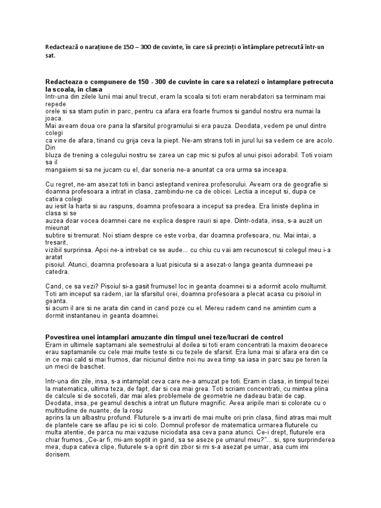 O Compunere In Care Sa Prezinti O Intamplare Petrecuta Intr O
