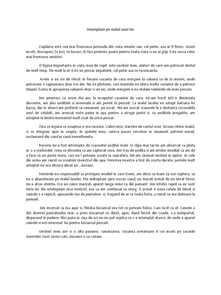 Redactează O Compunere De 150 300 De Cuvinte In Care Să Prezinți O Intamplare Petrecută Pe Malul Unui Brainly Ro