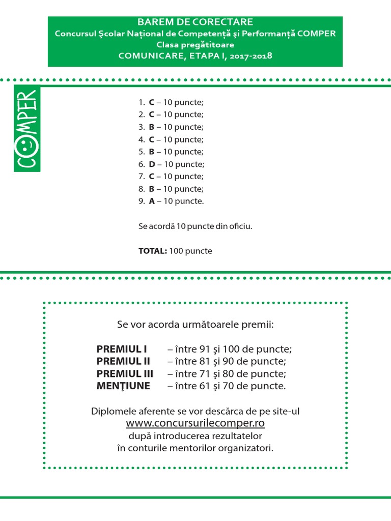 Comper 2018 Subiecte și Bareme De Corectare Pentru Etapa I Limba