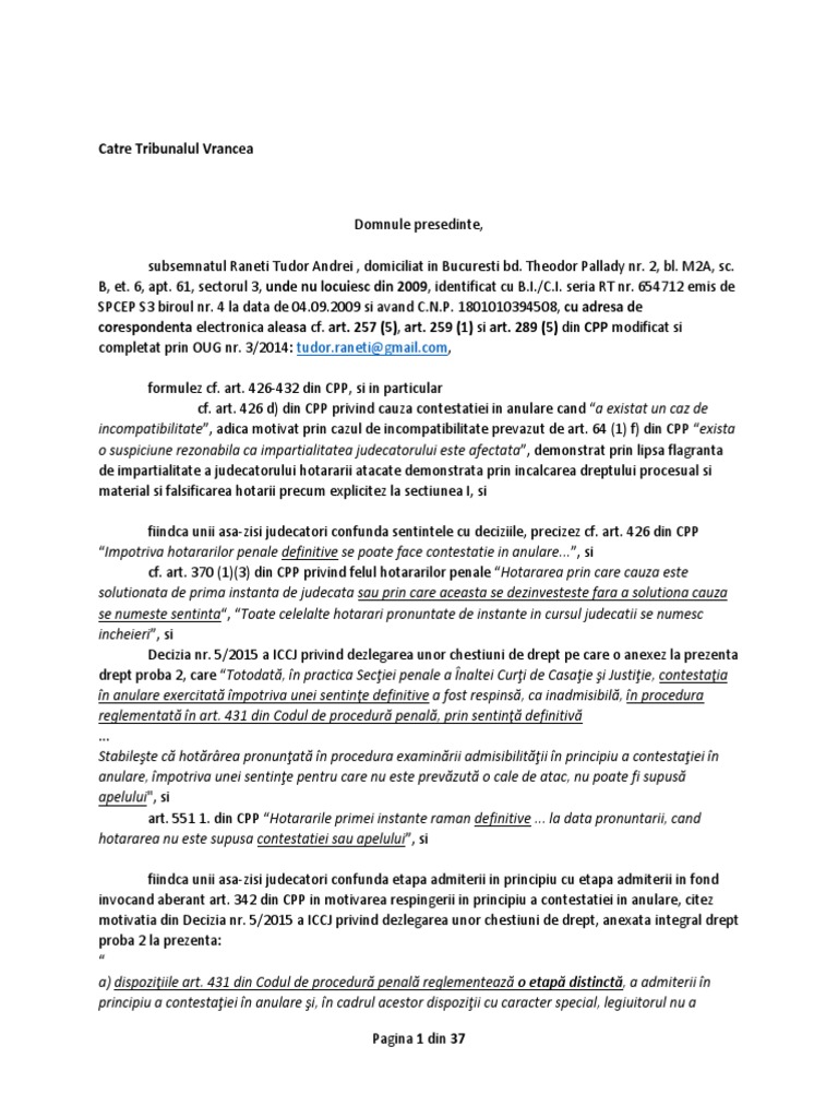 Doc Cerere De Contestatie In Anulare Magdalena Deac Academia Edu