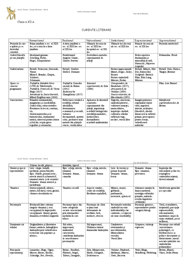 Curentele Literare Bac Tema I Romantismul Definitie A Aparut