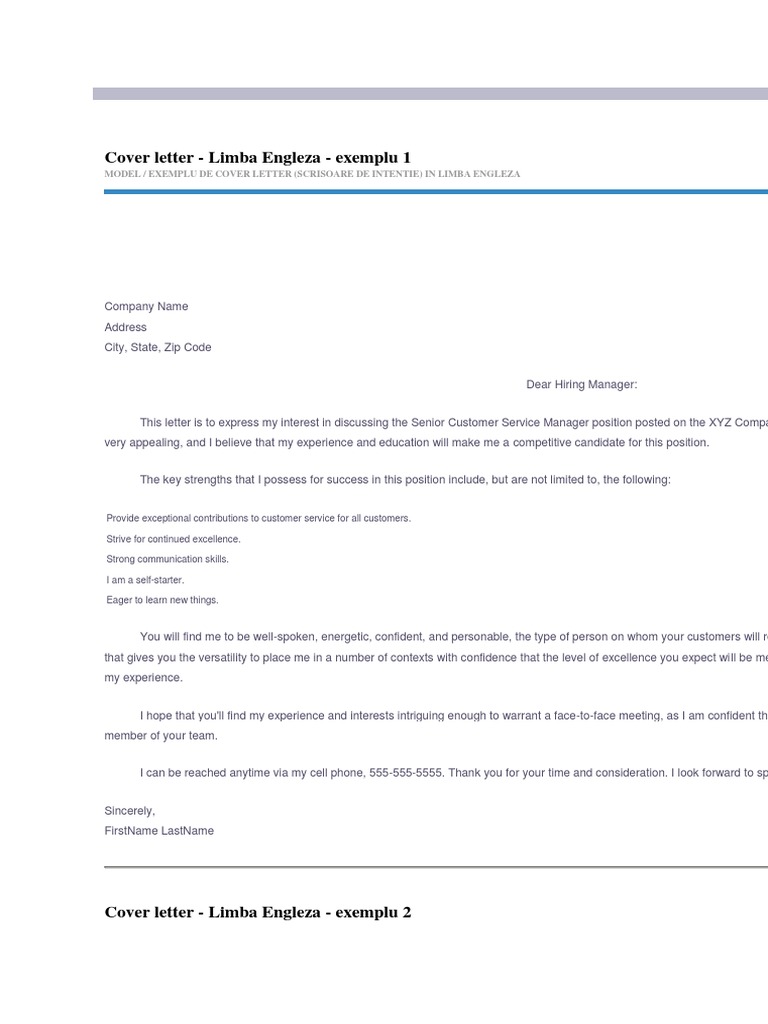 Modele De Scrisoare De Intentie In Limba Engleza Internship