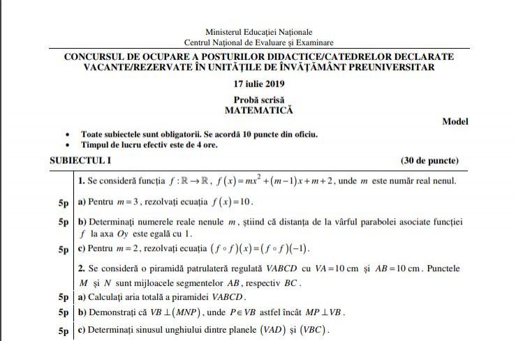 Titularizare 2019 Au Fost Publicate Modele De Subiecte Si Bareme