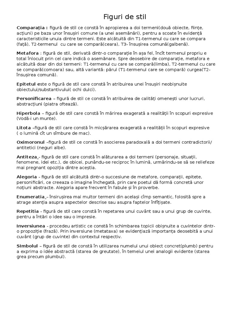 Comentarea Unei Figuri De Stil Docx Document