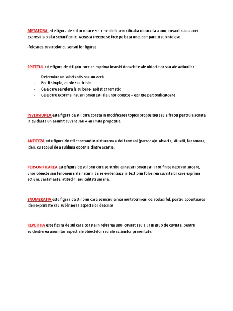 Figuri De Stil Definitii Si Exemple