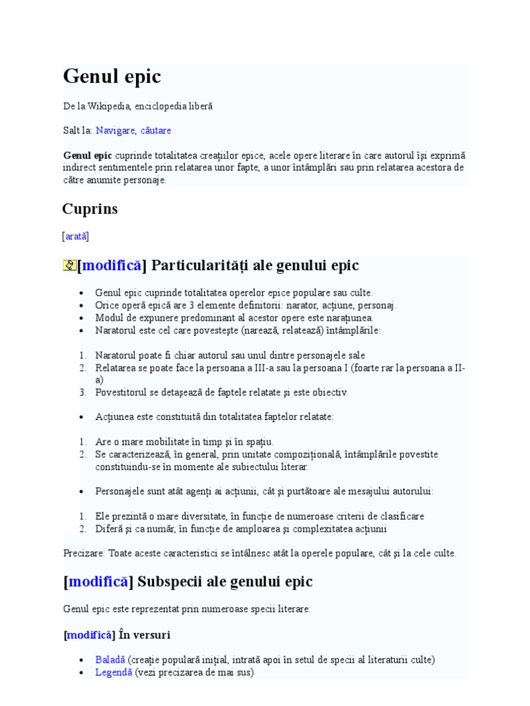 Doc Trasaturile Genului Epic Liric Si Dramatic Bia Cps