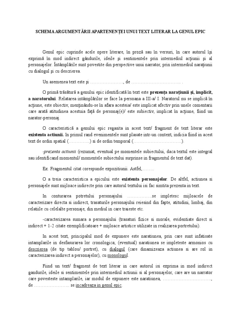 Model De Argumentare A Apartenenţei Unui Text La Genul Epic