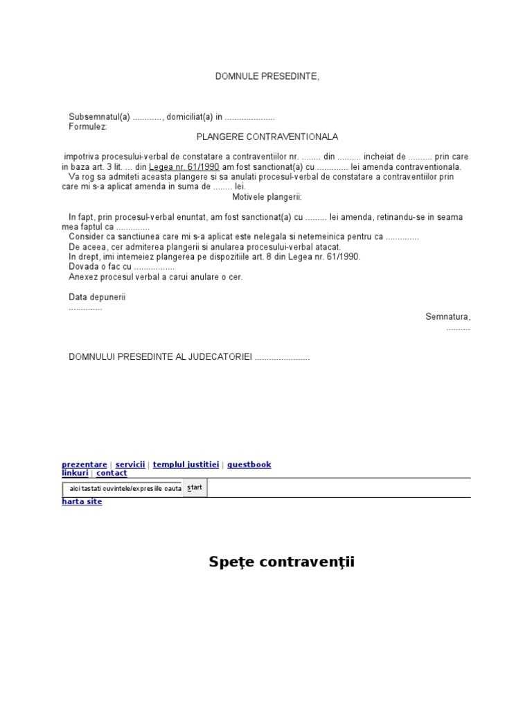 Impotriva Procesului Model Contestatie Proces Verbal Amenda