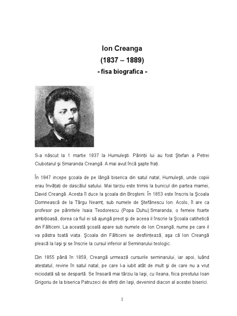 Fisa Biobibliografica A Lui Ion Creanga Brainly Ro