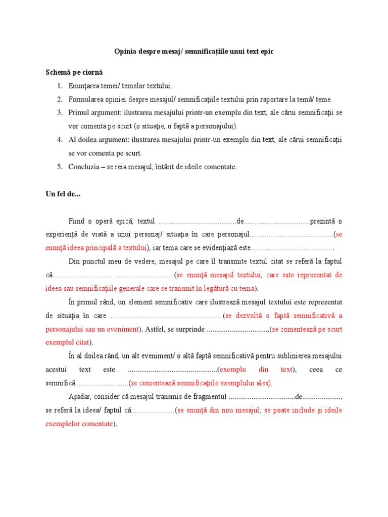 Cum Redactez O Opinie Despre Mesajul Unui Text Epic Brainly Ro