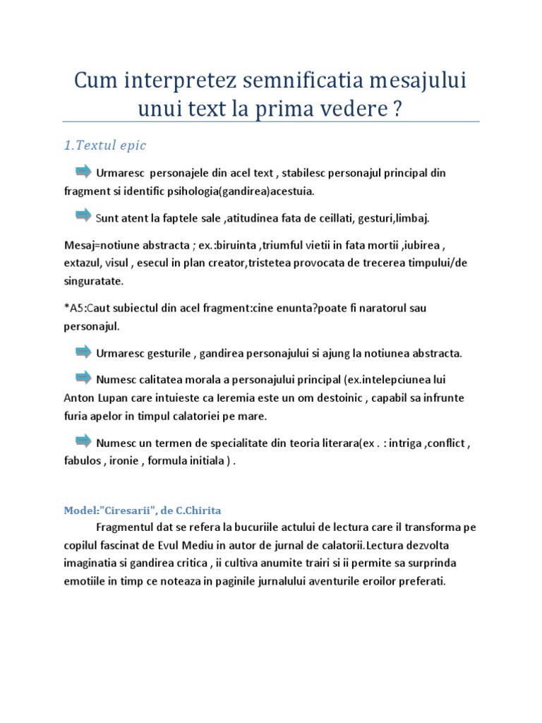 Semnificatia Mesajului Unui Text La Prima Vedere