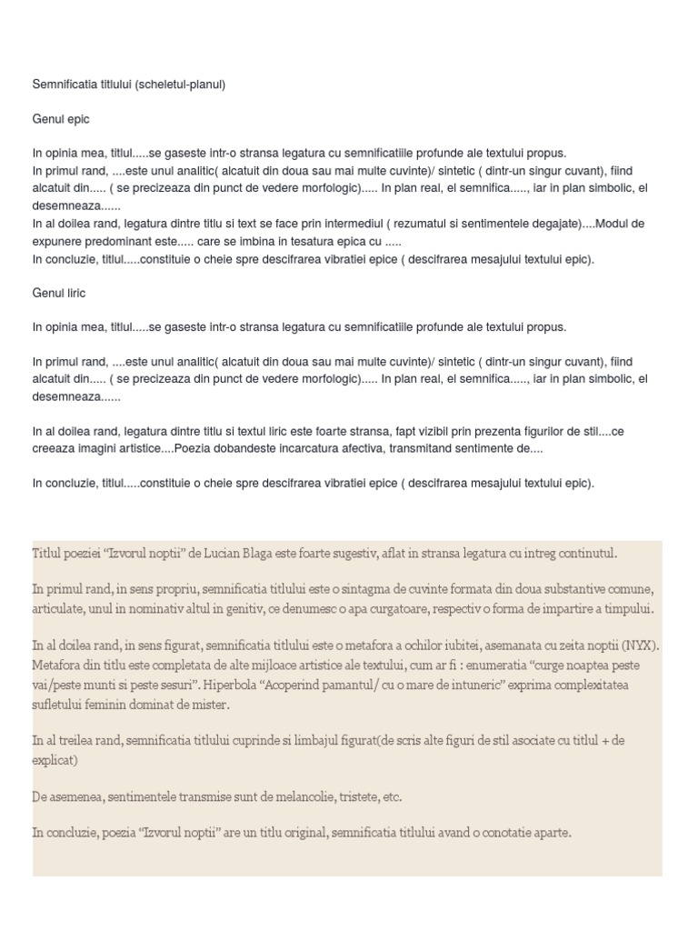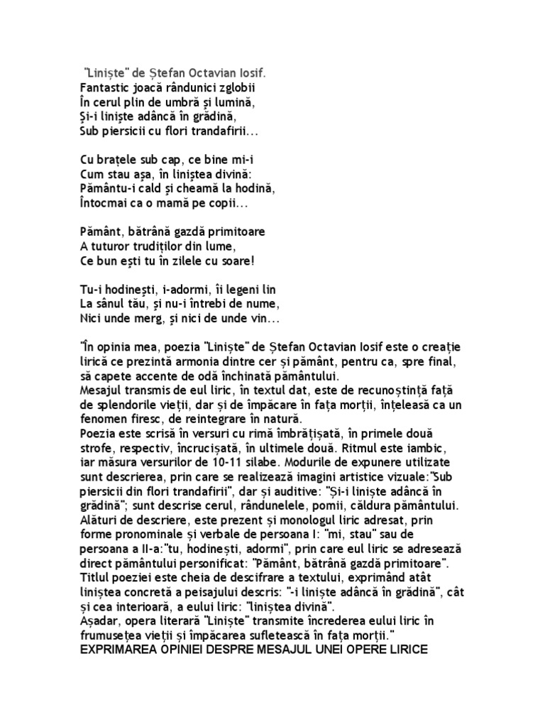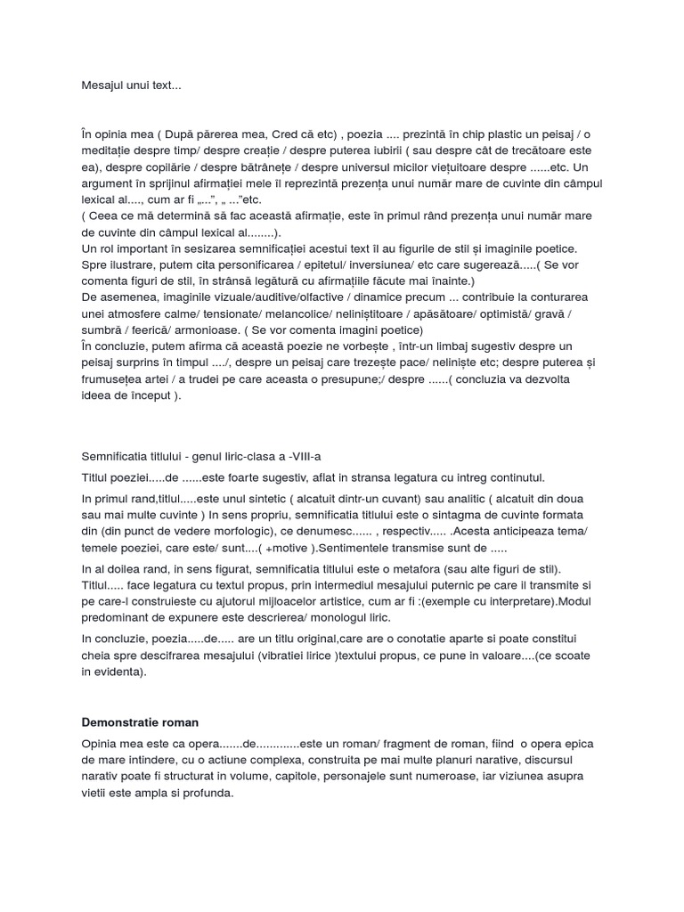 Exprimarea Opiniei Despre Mesajul Unui Text Liric