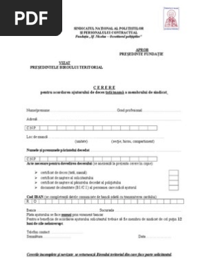 Model Cerere Ajutor Deces Sindicat Invatamant