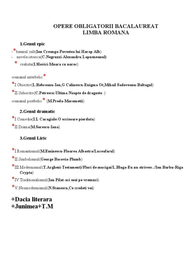 Lista Cu Operele De Bac S3 Romama Uman Robac