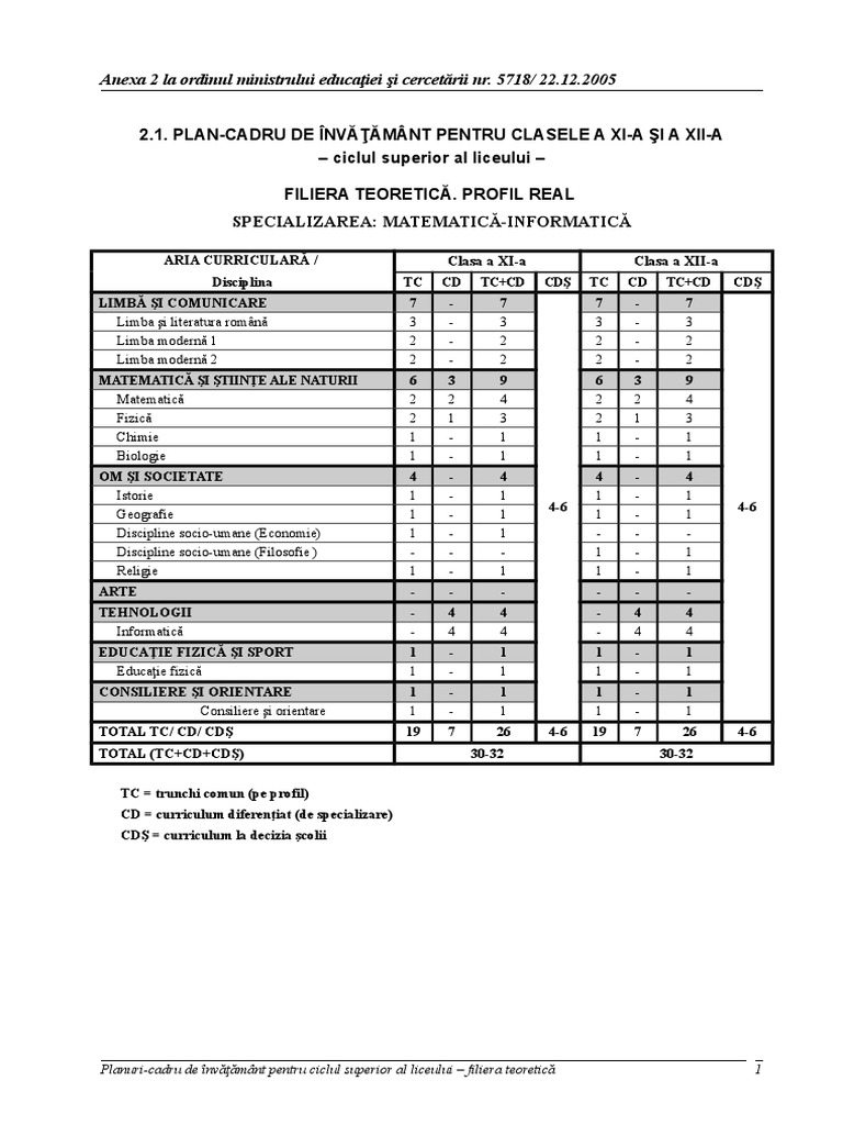 Plan Cadru C L A S A A Xii A A M A T E I N F O