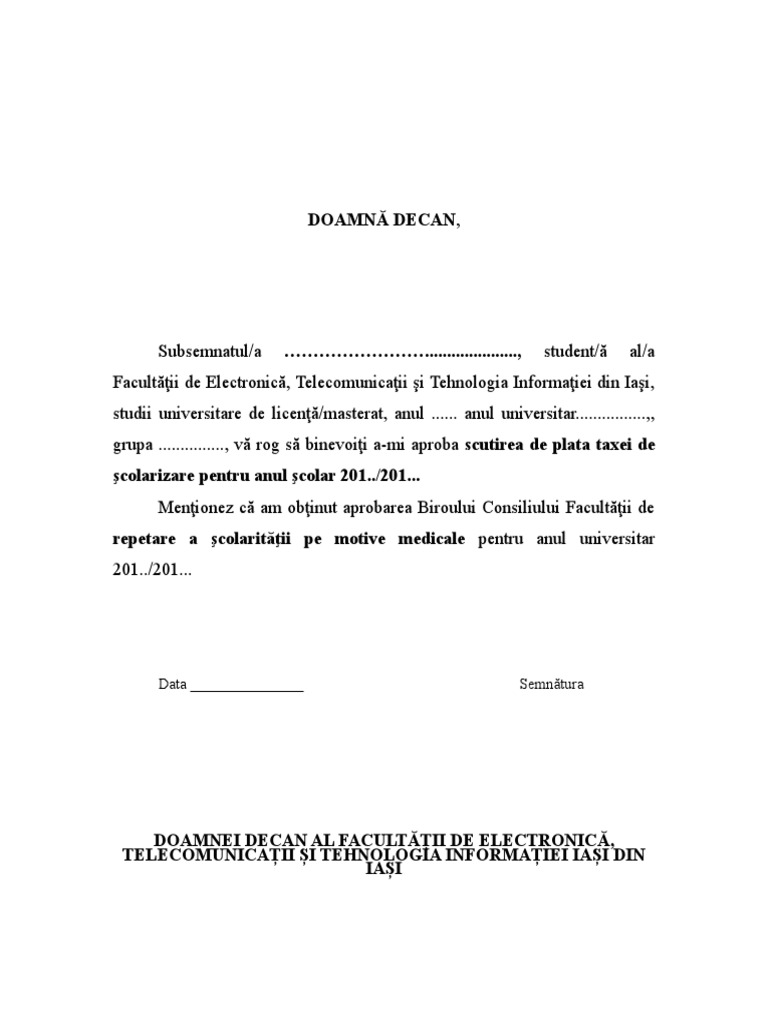Cerere Scutire Taxa Studii Repetare Scolaritate Motive Medicale Doc
