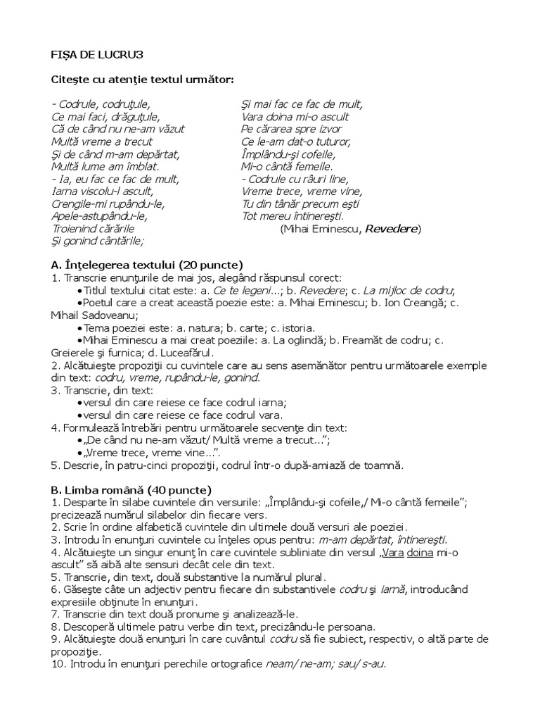 Fisa De Lucru3 Mihai Eminescu Revedere