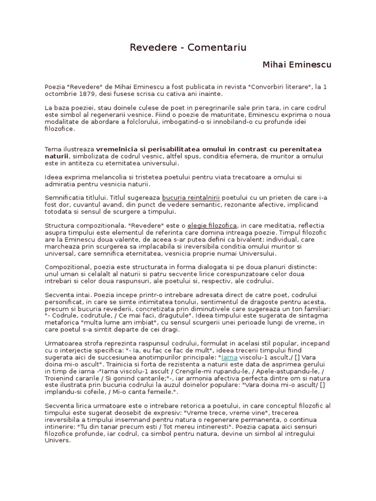 Referat Revedere De Mihai Eminescu 329306 Graduo