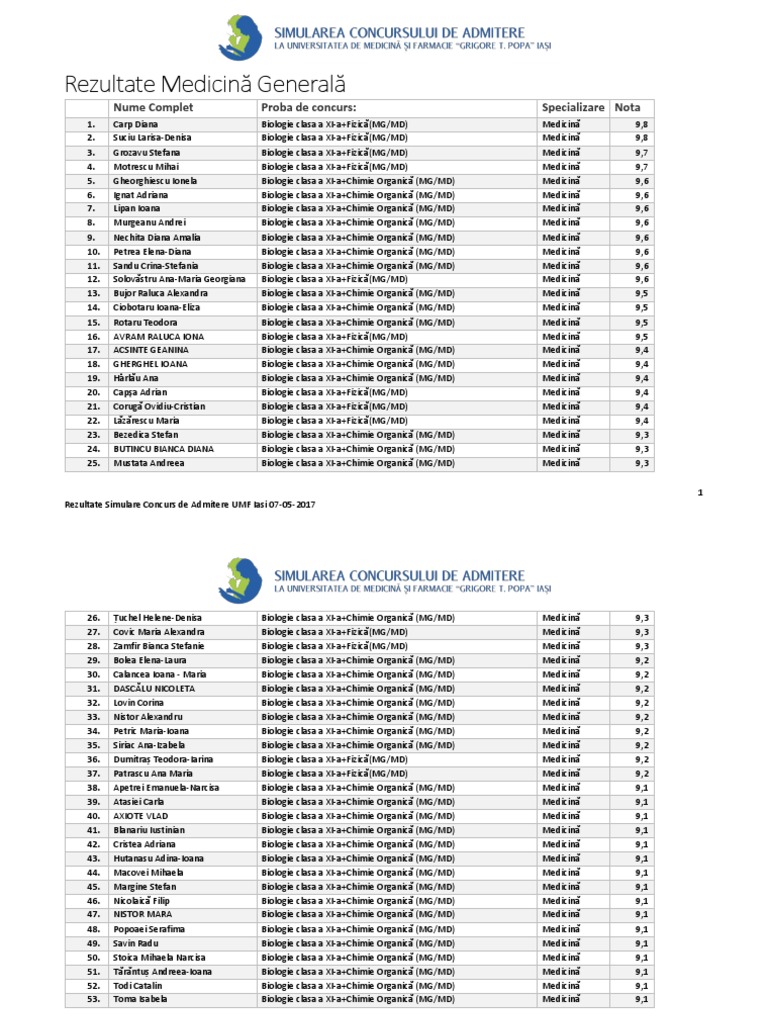 Rezultatele Concursului De Admitere La Umf Iași Afișate Vedeți