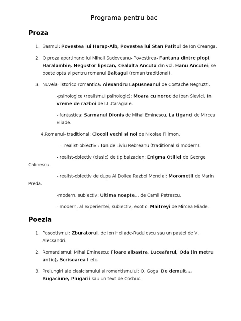 Subiecte Romana Bac 2016 Barem Lista Romane Interbelice și