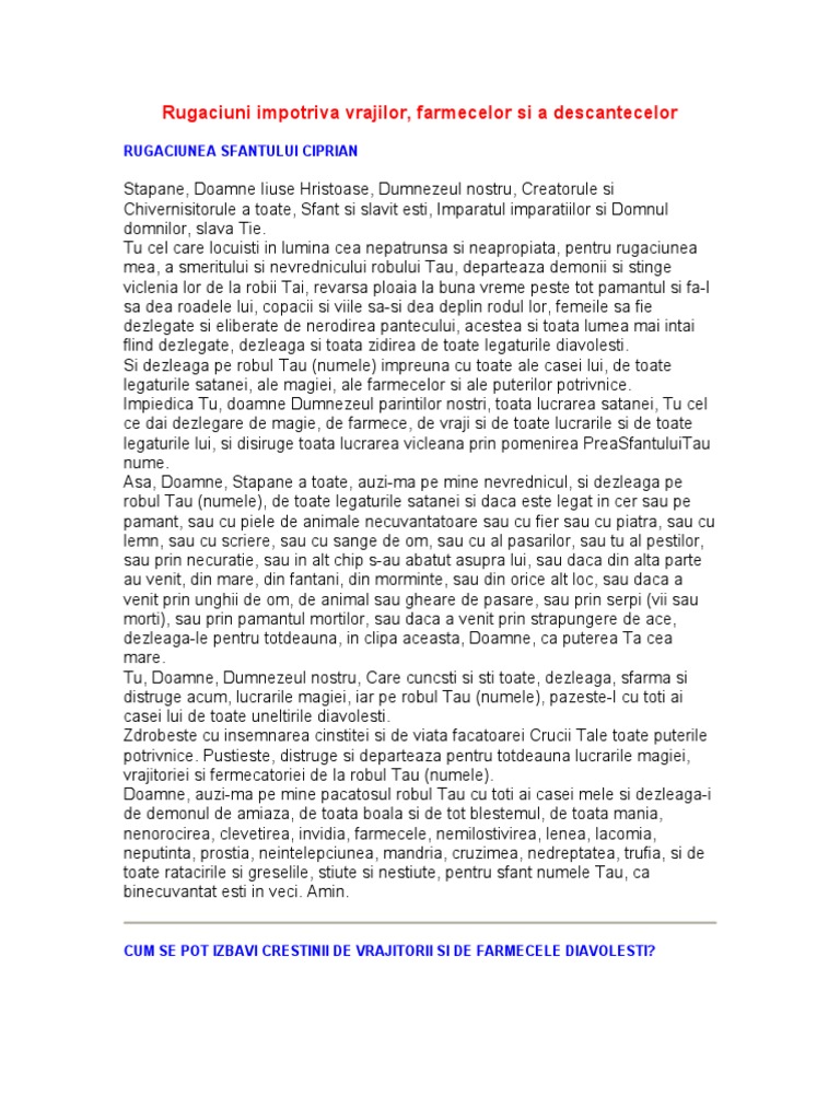 Rugaciuni Impotriva Vrajilor Sf Ciprian