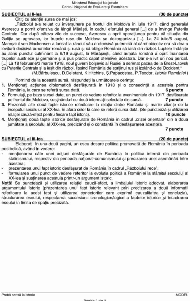 Subiecte Simulare Bac 2019 Istorie Clasa A Xii A Ce A Picat La Istorie