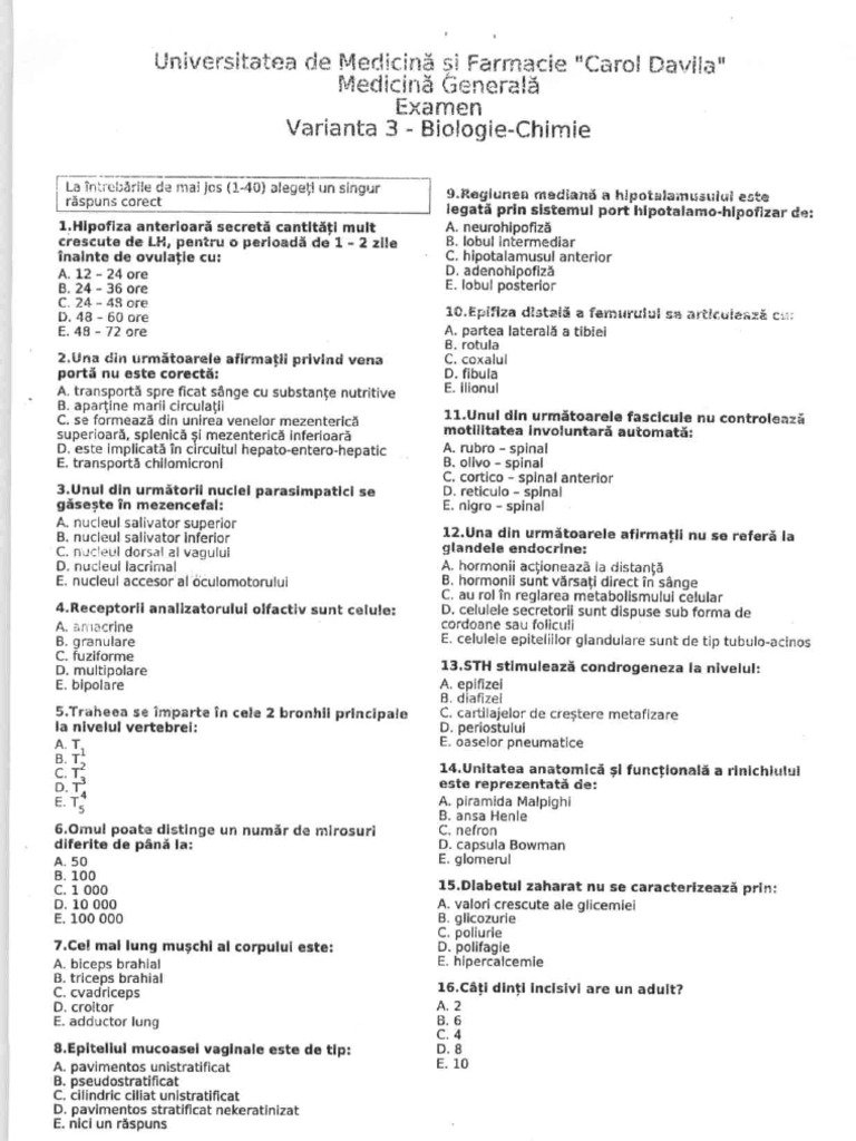 Subiecte Admitere Medicină 2015 Ce Au Primit Candidaţii La Examenul De Admitere De La Umf Carol Davila Romaniatv Net Mobi