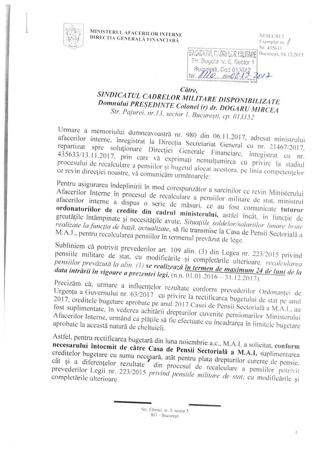 Sindicatul Cadrelor Militare Disponibilizate Scmd Decembrie 2017