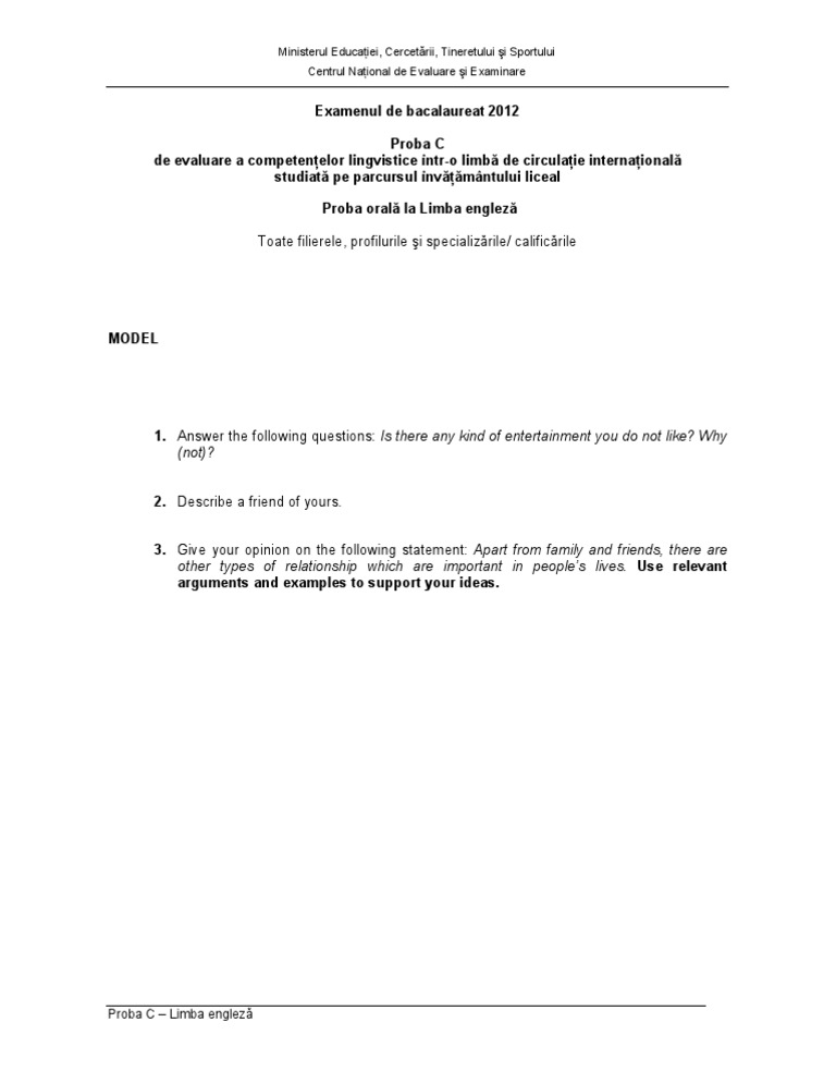 Proba C Limba Engleza Oral 1 Iunie