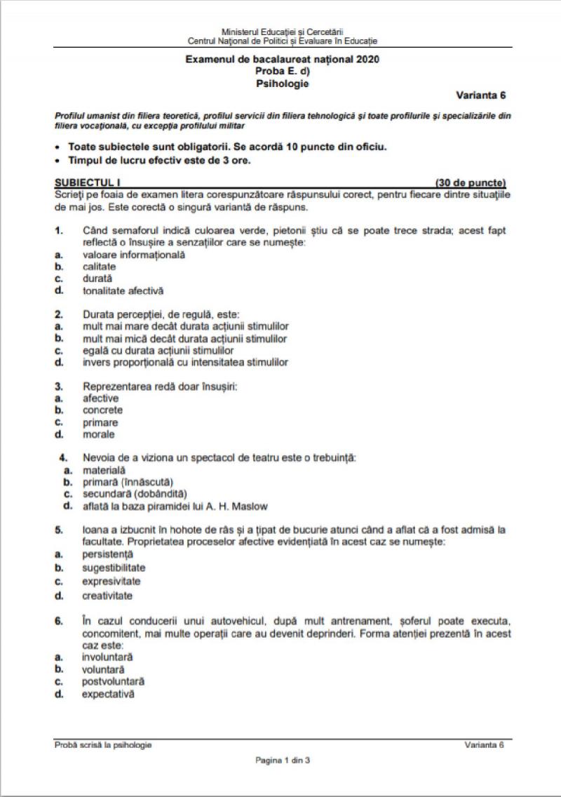 Subiecte Bacalaureat 2020 Psihologie și Sociologie Ce Subiecte Au