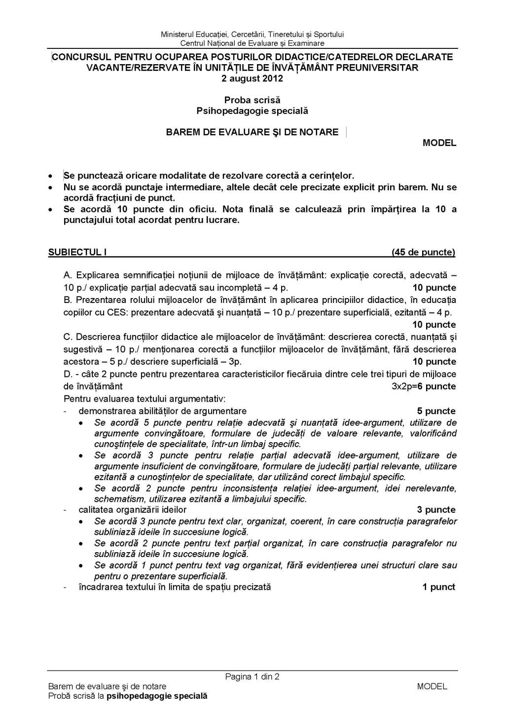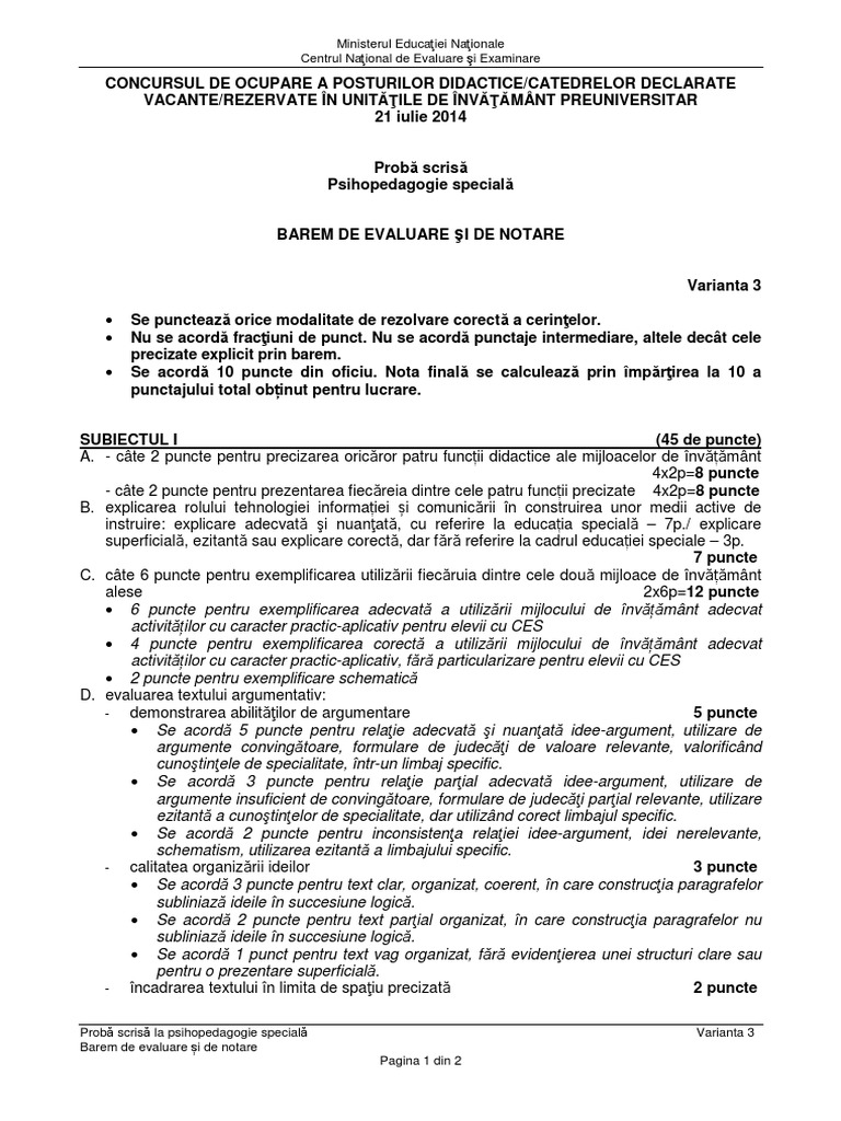 Definitivat 2015 Subiectele Si Baremele De La Examenul De