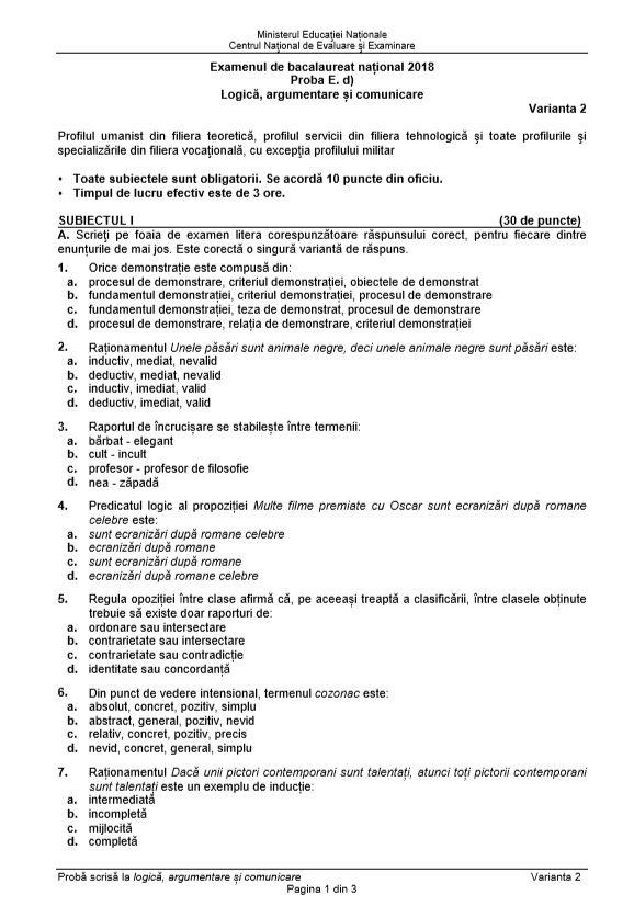 Subiecte Bac Logica 2020 Edu Ro
