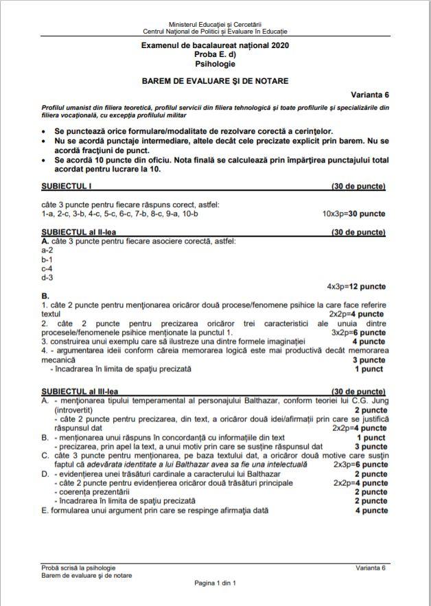 Subiecte Psihologie 2019 Edu Ro Avem Baremul De Corectare La