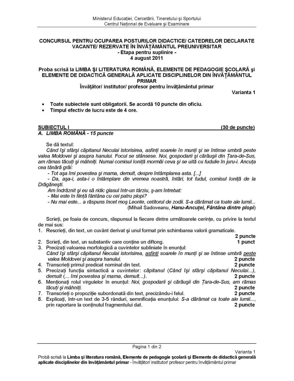 Subiecte Suplinire Invatatori