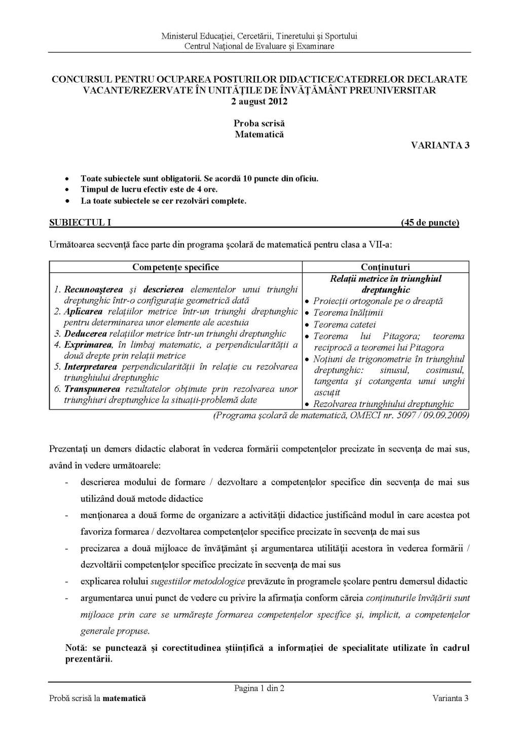 Definitivat 2019 Subiectele și Baremele De La Proba Scrisă Pe