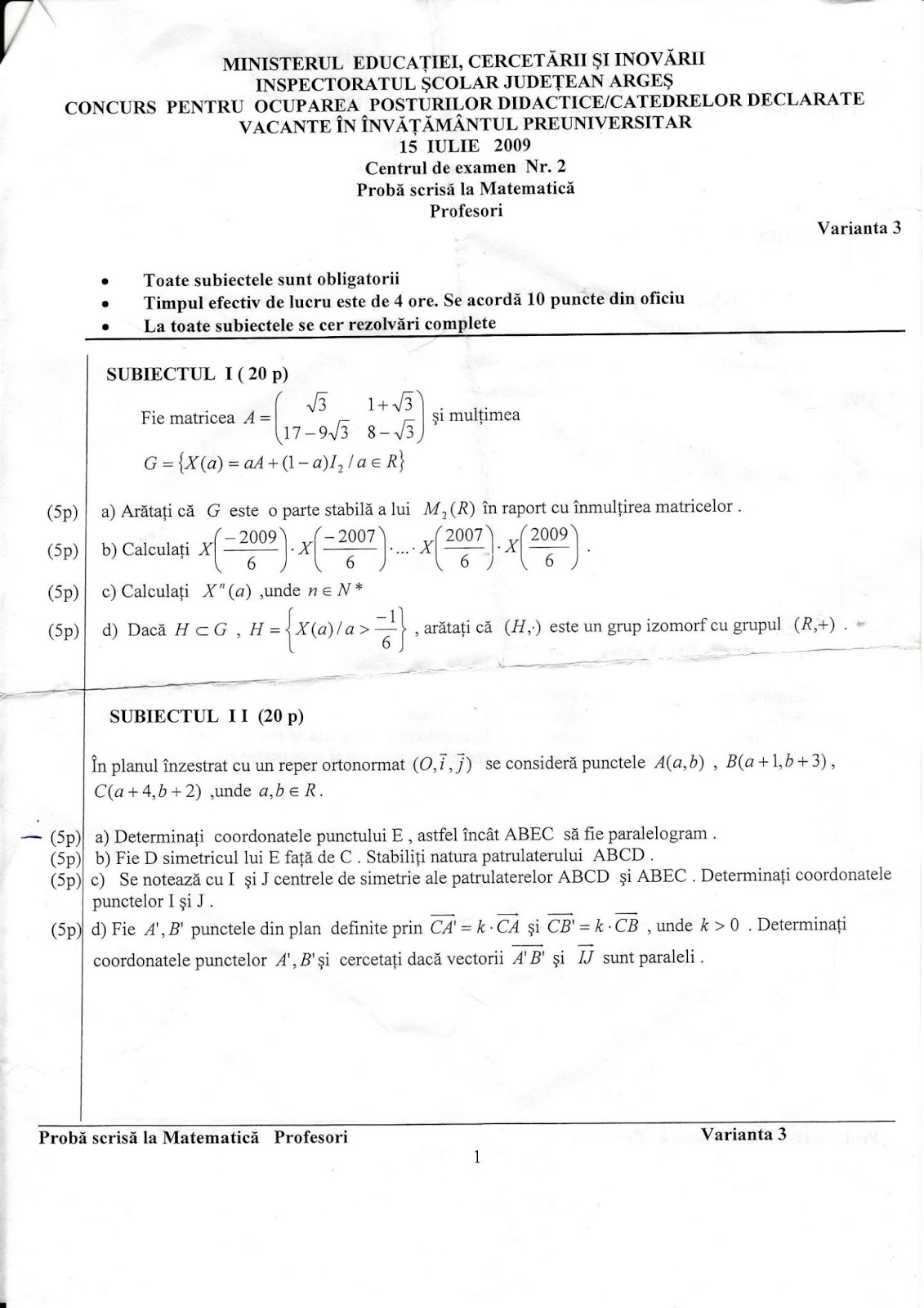 Subiecte Variante Si Rezolvari Pentru Examene Nationale 2020