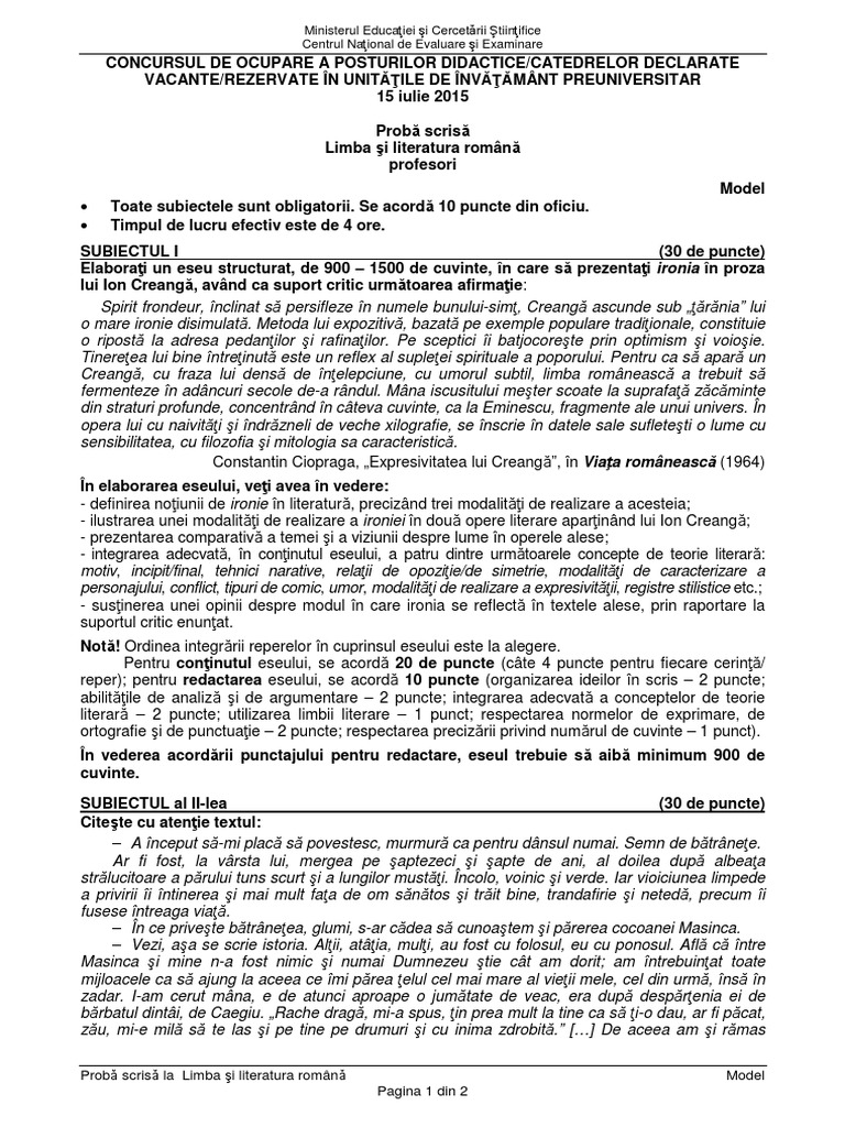 Romana Info Ro 2557 Titularizare 2015 Subiecte Si Barem Invatatori