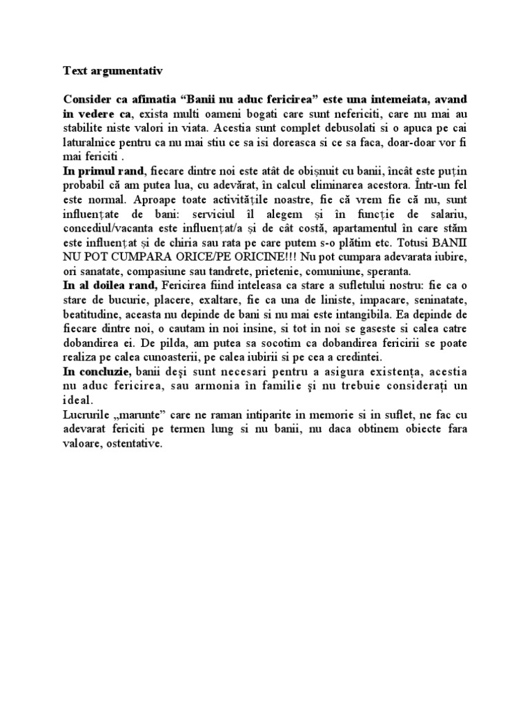 Redacteaza Un Text Argumentativ De 150 300 De Cuvinte Despre