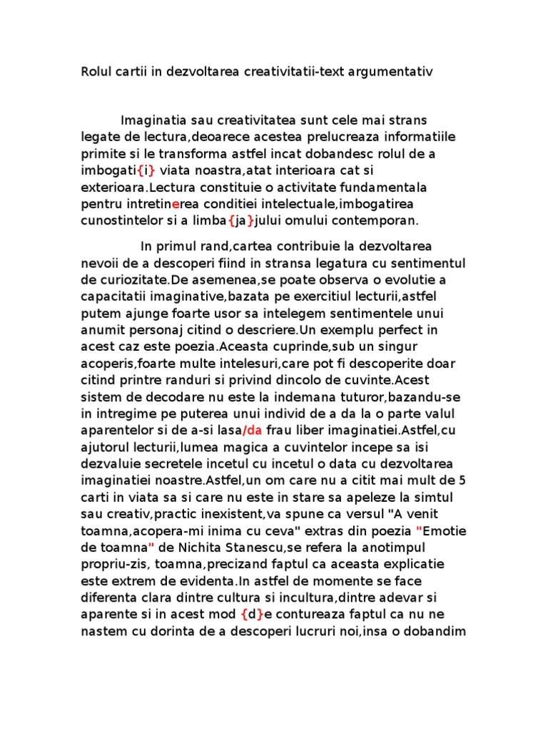 Doc Structura Unui Eseu De Tip Argumentativ Lavinia Negru