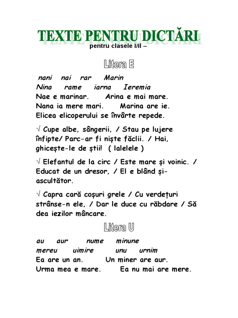 Texte Pentru Dictari Ortograme Texte Gemeni Educație