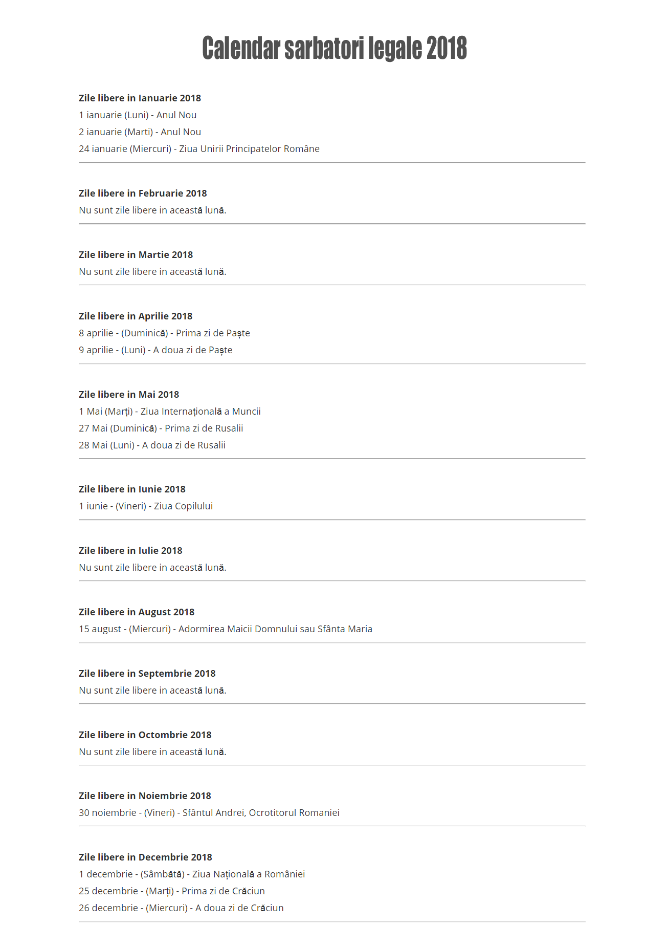 Calendar 2018 Romanesc Printabil Cu Sarbatori Legale Calendar
